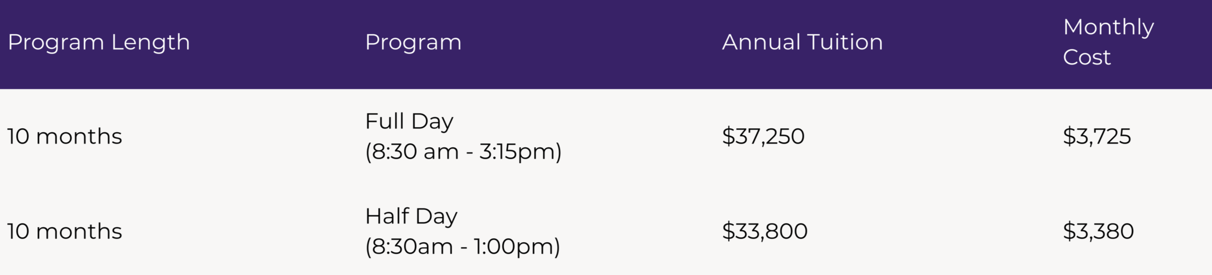 AfterCare (3:15pm - 5:30pm): $8,500 per year (Sept.-June)